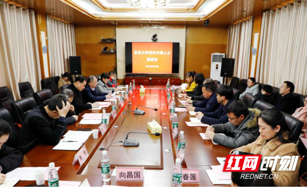 白晋湘通报了学校第七次党代会和近年来学校建设发展的情况及未来五年的发展规划,他表示,此次代表校党委和行政来张家界校区看望党外人士就是真诚倾听党外人士的心声,共商学校发展大计。他希望各党外人士加强自身建设,提升工作质量和奉献力度;加强社会服务,树立吉首大学社会服务的品牌和特色;为学校发展积极建言献策,提高履职能力,敢于担当作为。希望各党外人士与吉首大学党委同心同德、凝心聚力、风雨同舟、励精图治、艰苦奋斗、携手共进,奋力谱写高水平教学研究型地方综合性大学改革发展的新篇章,在湖南“三高四新”战略的生动实践中做出吉首大学党外知识分子应有的贡献。