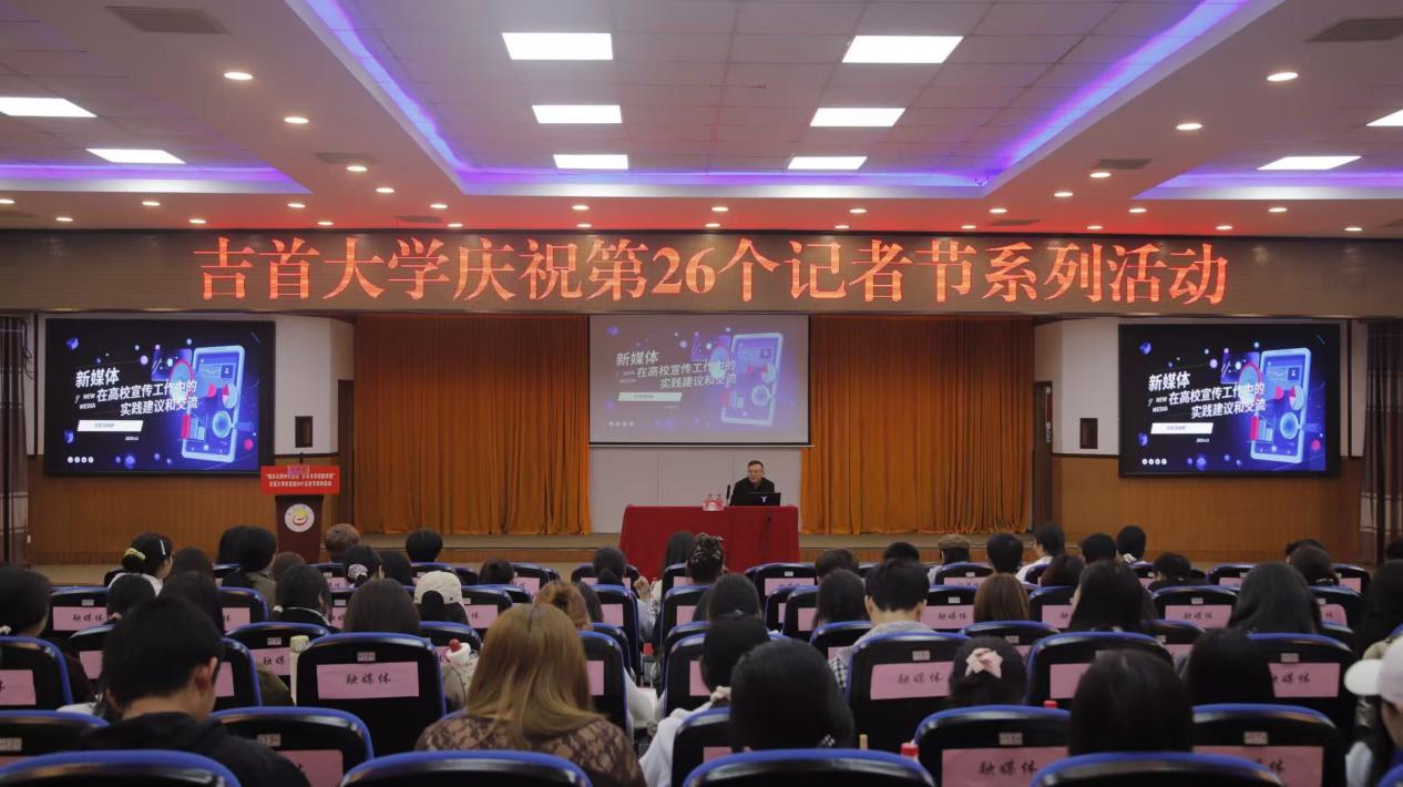 本网讯(文/吴姣 吴仁银)为进一步讲好吉大故事,展现新时代校园新闻宣传工作者的亮丽风采,11月8日,我校在砂子坳校区第六教学楼举办“镜头记录时代新貌 妙笔书写校园华章”庆祝第26个记者节系列活动之新闻采写培训讲座及素质拓展活动,210余名师生代表参加本次活动。