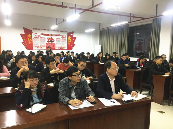 讲座站位高,立德树人是高校立身之本,政治建设是党的根本建设;讲座指导性强,讲座提出了立德树人根本任务、根本遵循、鲜明主题和本质要求;讲座观点新,强调了立德树人“三个维度”“六种性质”,提出了政治建设是办学治校的思想源泉;讲座内容实,在立德树人中要旗帜鲜明讲政治,要牢记立德树人初心和使命,树师德师风,做“四有老师”,勇于政治担当,提升政治能力;讲座吸引力大,结合“不忘初心、牢记使命”主题教育,也是一堂理论学习辅导课,两院师生党员认真听讲做笔记,收获满满。