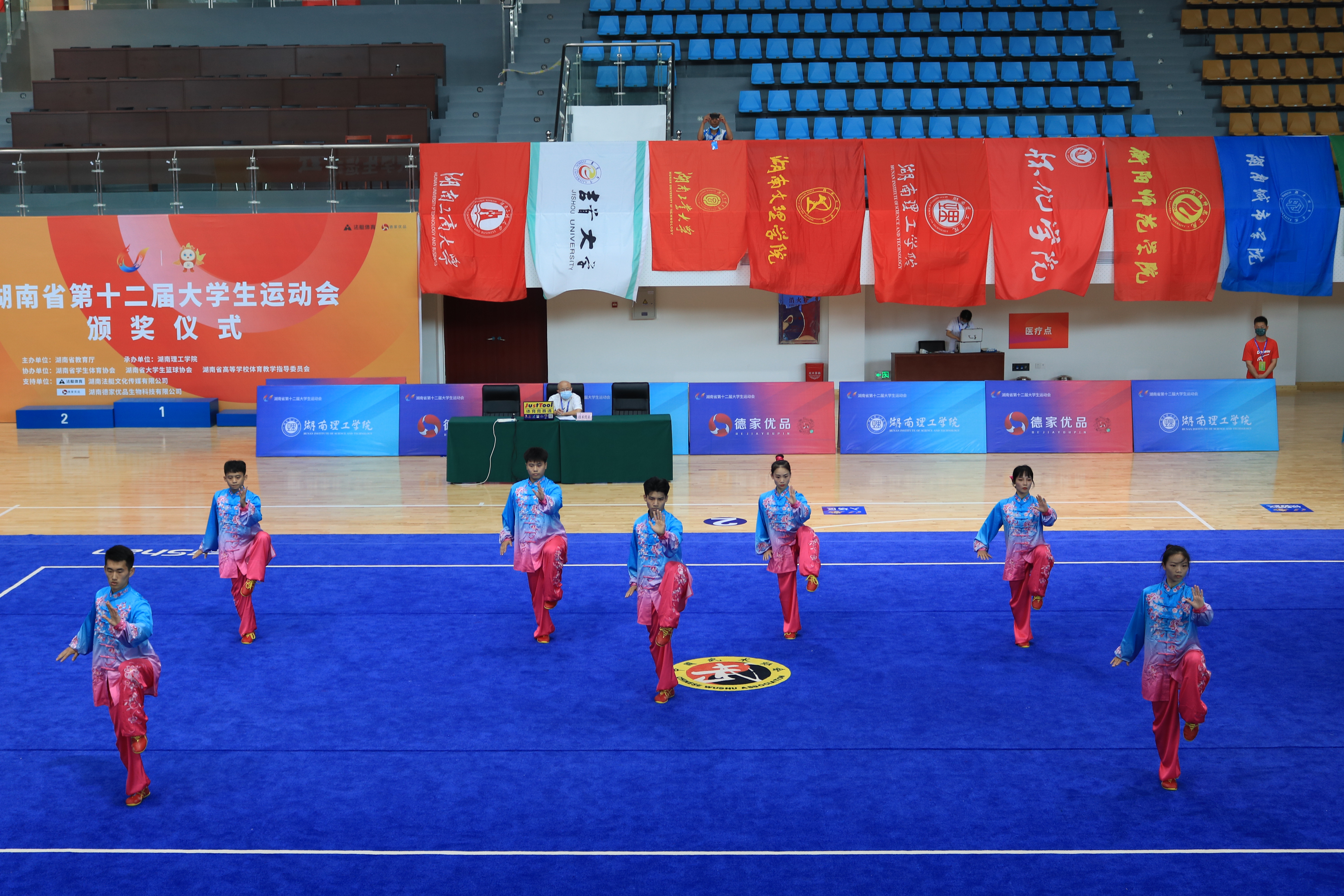 湖南省大学生运动会四年举办一届,是湖南省大学生的“奥运会”。我校武术队在本次比赛中充分展示了他们修德尚武、勤奋苦练、顽强拼搏、追求卓越的精神风貌,全面展现了吉首大学做体育文化人的理念。竞技成绩和精神文明的双丰收,也体现了学校武术与民族传统体育国家级一流专业建设的成效。