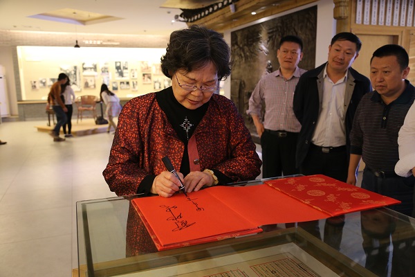 图为贺邦靖参观完沈从文纪念馆后签名留念 苏卫平摄