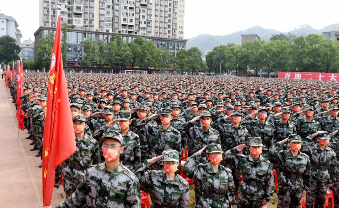 军训动员大会在全场合唱的《中国人民解放军军歌》声中圆满结束。