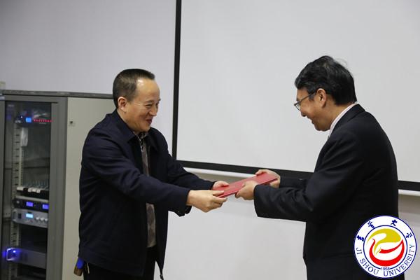 图为钟海平副校长为曹晖主任颁发聘书 翁凯摄
