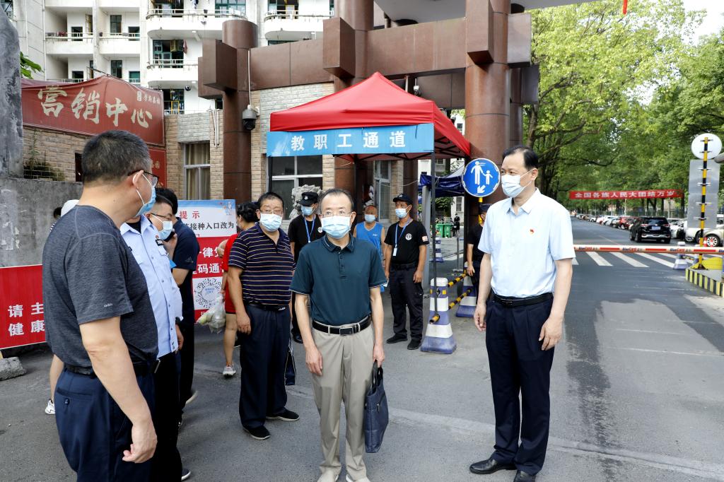 会前和会后,白晋湘带队对砂子坳校区和大田湾校区校门口、食堂等重点场所的防疫工作进行了实地检查和指导,要求工作人员克服困难,认真履责,严格防控措施,确保校园安全。