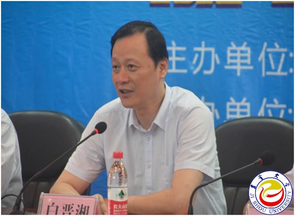 我校党委副书记、校长白晋湘,湖南省教育后勤协会会长杨定忠,中国后勤信息化建设专业委员会主任王武海,我校副校长、中国后勤信息化建设专业委员会副主任黄昕,中国后勤信息化建设专业委员会秘书长石磊,湖南省教育后勤协会秘书长夏智勇,湖南省教育厅后改办主任刘梦清等出席本次会议。