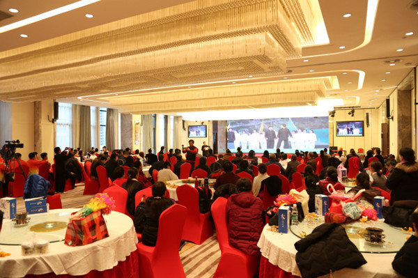 本网讯(宋林凤)12月22日,吉首大学太极养生协会2018工作年会在湘西经开区厚驿大酒店举行。校工会副主席吴恒忠、湘西州教育与体育局副局长麻建峰、湘西州武术监事长秦可国、湘西州太极协会会长陆盛华、湘西州武术协会会长彭剑刚、厚驿大酒店总经理洪涛等厚驿公司领导、调皮羊生物科技有限公司吉首分公司总经理关煚尚、吉首大学太极养生协会会长李培雄、副会长麻成金、罗建军、毛汉建、郭振华,以及太极养生协会会员、州县市太极爱好者近二百人参加了年会。年会由毛汉建主持。