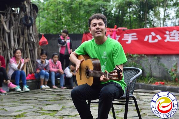 图为我校少数民族学生表演吉他弹唱 孙立青摄