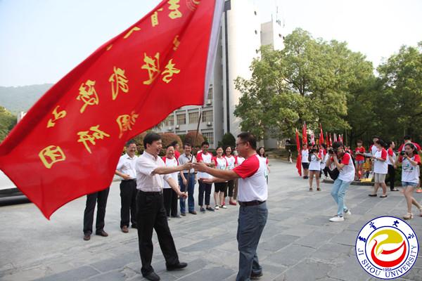 图为龙先琼副校长为实践团队授旗 见闻摄