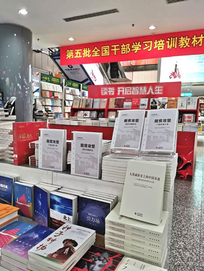 图为《脱贫攻坚前沿问题研究》在北京图书大厦 “中国扶贫书系”位置重点陈列
