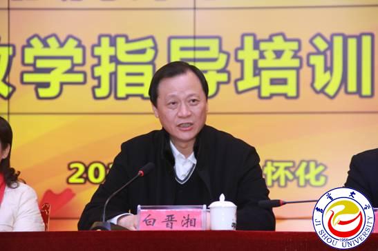 白晋湘校长在讲话中首先代表学校对省卫计委和怀化市人民政府各级领导的莅临表示了感谢,对成为我校附属第四医院的怀化市第一人民医院全体医务人员表示欢迎,他简单地介绍了吉首大学的基本情况以及建校58年来的办学成就和主要办学特色。白晋湘指出,医教协同,共同创新,互利共赢是服务医药卫生体制改革和卫生计生事业发展的重要举措,也是学校和医院实现快速发展的正确抉择和必由之路,他希望双方以附属医院建设为契机,全面开创医教研协同发展的新局面,共同造福片区大众百姓,为湖南省西部及武陵山区经济社会的发展做出贡献。