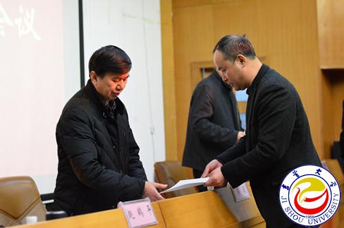 图为各单位向白晋湘校长递交责任书 孙立青摄