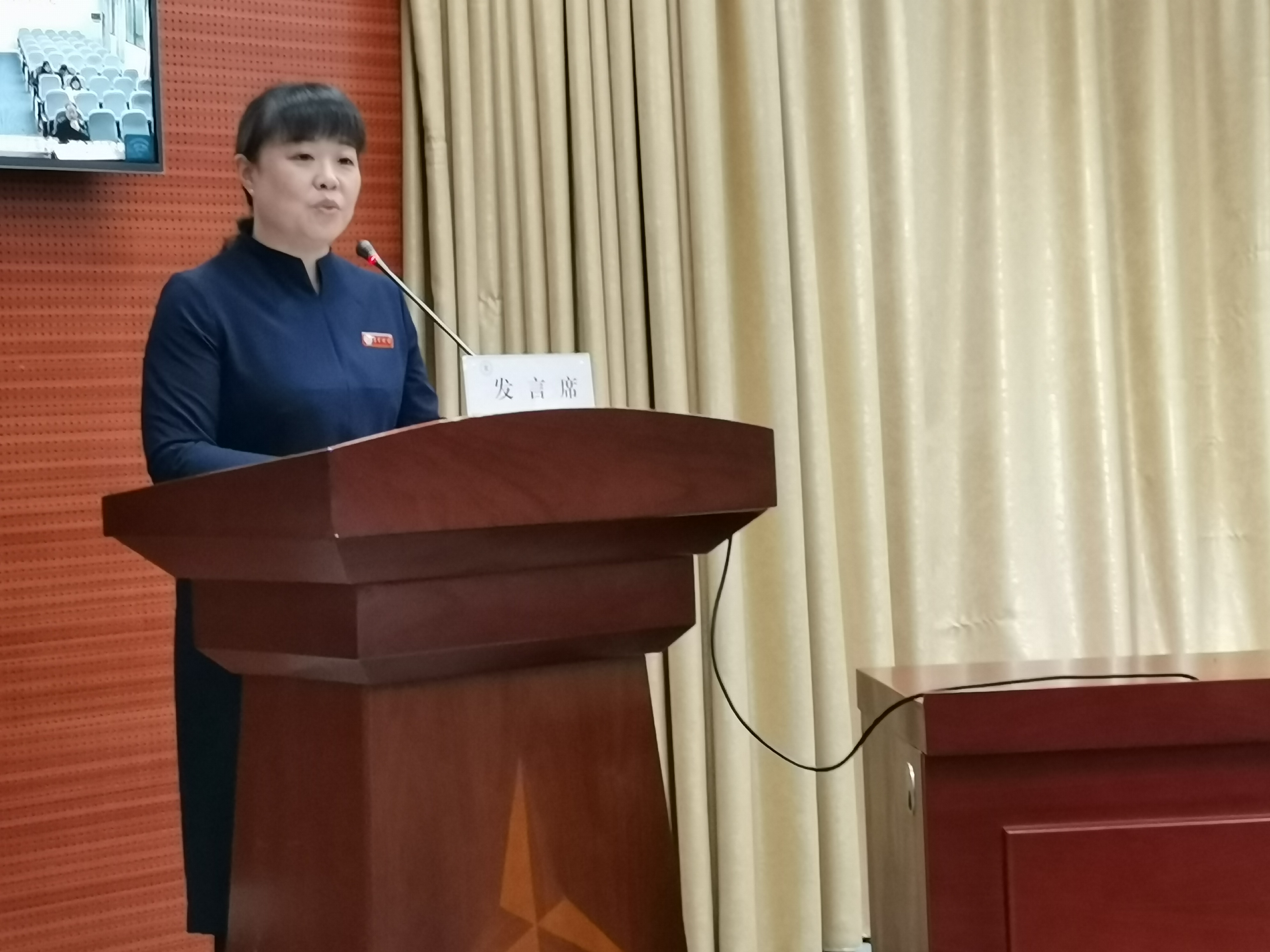 图为校党委委员、副校长、组织部部长王艳在会上代表学校作典型发言