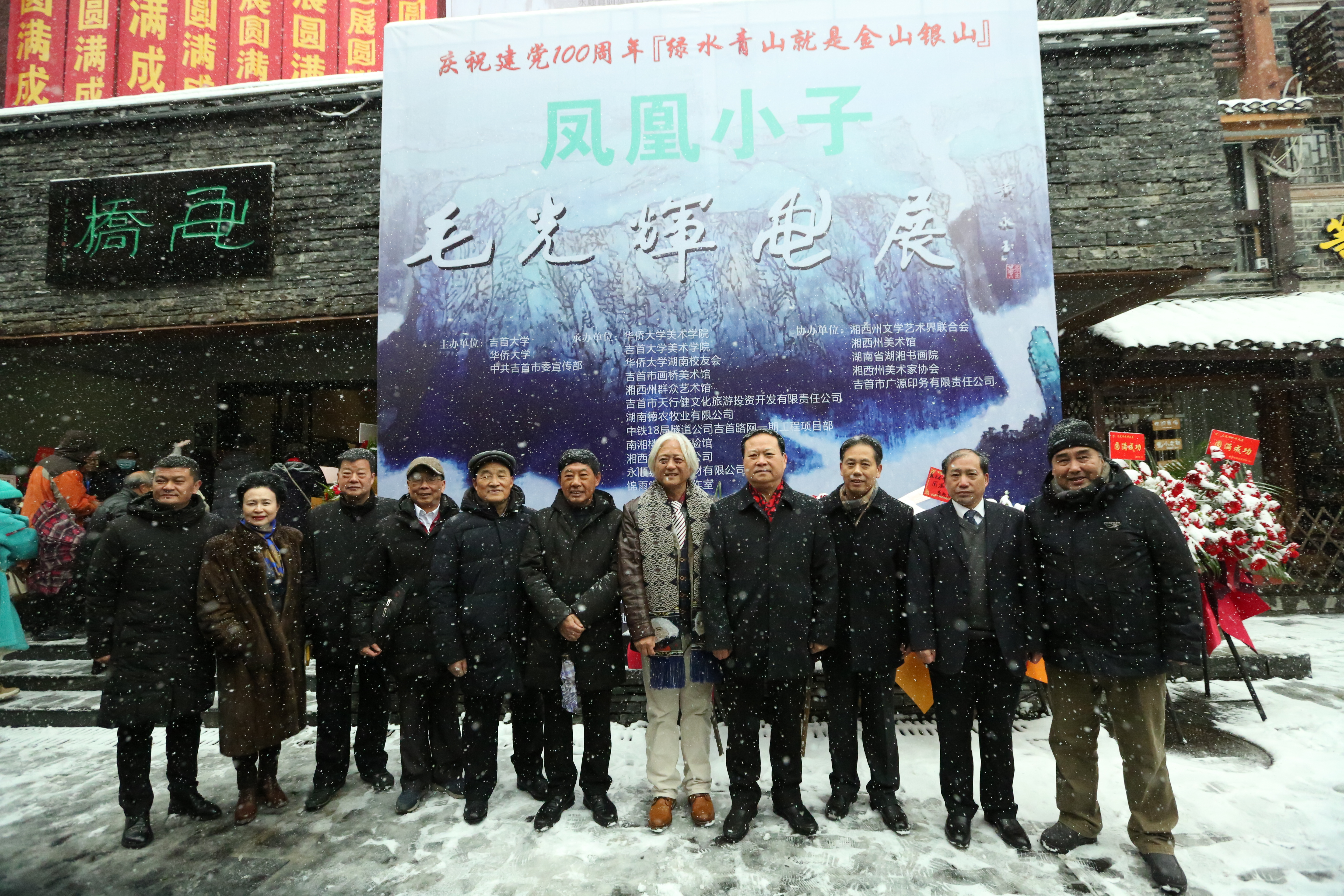 本网讯(黄思语 孙立青)群贤毕至画桥畔,瑞雪丹青照丰年。12月26日上午,为庆祝建党100周年暨毛泽东同志诞辰128周年纪念,客座教授毛光辉“绿水青山就是金山银山”画展在湘西州吉首市乾州古城画桥美术馆开幕。