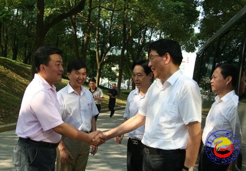 下午四时许,在省、州领导的陪同下,徐守盛莅临我校。徐守盛在总理楼前与迎候在这里的校党政领导一一见面。在参观完前总理朱镕基题写的诗牌后,徐守盛一行看望了刚刚入学正在参加军训新生。