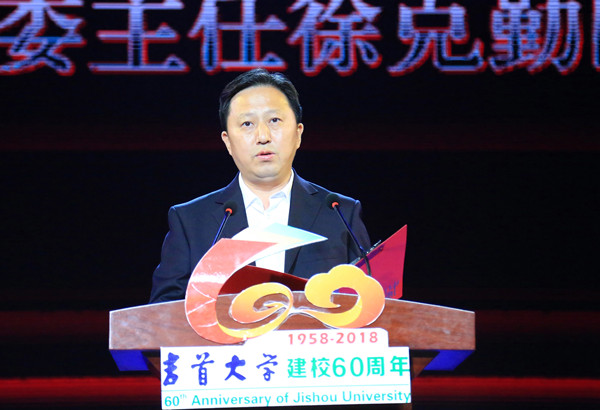 湖南省人大常委会党组成员李友志讲话。他说,60年来,吉首大学认真贯彻党的教育方针,秉承“平民大学”的办学理念,发扬“凤飞千仞,薪传八方”的吉大精神,锐意进取,奋发有为,以人名校,以业报国,已经成为一所办学特色鲜明、办学成绩突出的地方综合性大学,是湖南民族高等教育的领头羊和中坚力量。60年来,学校英才辈出,桃李芬芳,为国家培养输送了大批高素质的应用型人才,涌现了一大批活跃在党政机关、教育战线和社会各个领域的领军人物和优秀人才,为湖南西部乃至武陵山片区经济社会发展发挥了重要作用。
