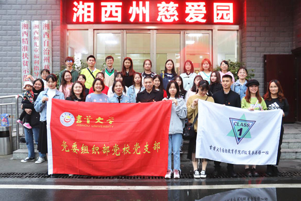 本网讯(蔡倩倩)11月2日下午,校党委委员、组织部部长张兰芳,组织部党校党支部书记、组织部副部长周琴,综合科副科长徐开颜、组织科副科长侯有德,国际教育学院一班班主任俞艳珍、辅导员田苇及该院2018级商务英语一班的28名同学一行前往湘西州慈爱园开展志愿服务活动。