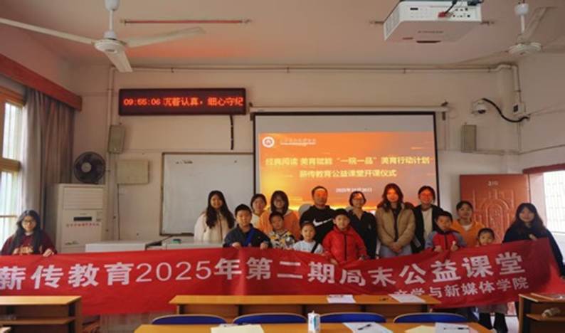 本网讯(通讯员 欧阳晖 陈佳宜 杨甜甜)为深入贯彻落实“一院一品”美育行动计划,推动传统文化进校园、进课堂,10月26日,文学与新媒体学院“薪传教育”公益课堂开课仪式在砂子坳校区第一教学楼顺利举行。